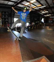 Landon Brown took 5th place in the 9-12 division. Here's Landon on a frontside Indy.