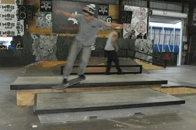 The bump to flat is a popular one. That's Ish kickflipping it.