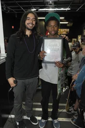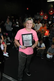 We're about to have the All Ages End of Year Awards later, but we had to catch Laura early before she left. She got the "Go Win X Games Women" Award. She could probably win it out there. Are they still giving out like 25 grand for 1st there?