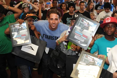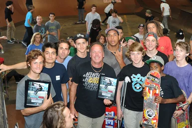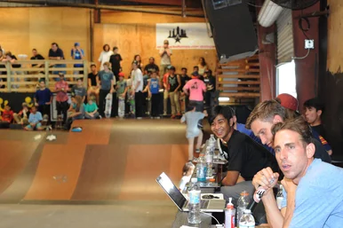 Guy gave out Lakai shoe certificates to kids with the most struggling shoes.