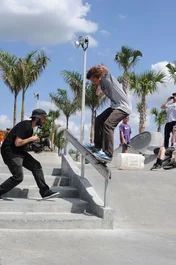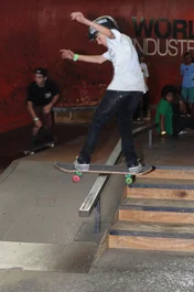 We ran into our friends from Puerto Rico. That's Rio Batan Matienzo on a crooked grind.
