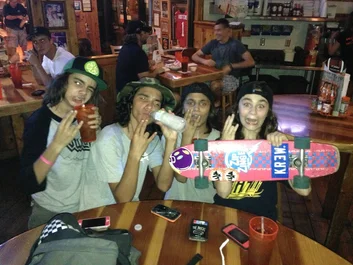Eric traded in his banging backside flips for the Matix beer belt. Smart choice, Eric.