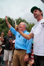 Who's that in the middle? Bob Buckhorn, The Mayor of Tampa! And he backs skating, what could be better than that?