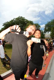 Paul Schmitt and Tito Porrata. If you don’t know who Professor Schmitt is, I feel bad for you. He’s a pioneer in skateboarding because he continues to get behind the science of it while creating the best skate decks in history. Tito is part of those guys known as Team Pain, building concrete skateparks around the country. Two guys responsible for this new skatepark in downtown and two legends!