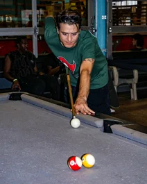Blake taking a sec to warm up his autograph hand with some 8 ball.