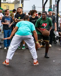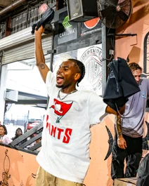 This is probably the first time someone threw out Guess Jeans to the crowd in a Product Toss.