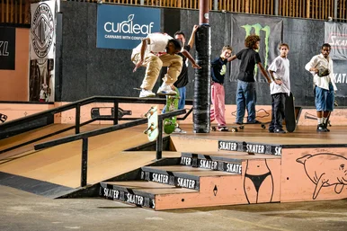 John Dilo with a Switch Frontside Flip that would have cleared another bar.