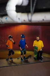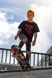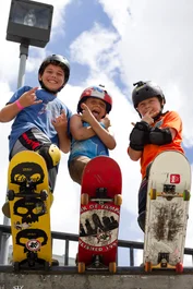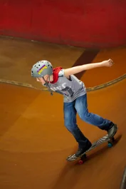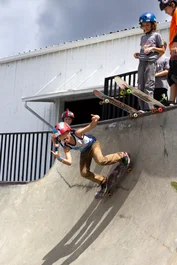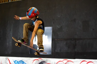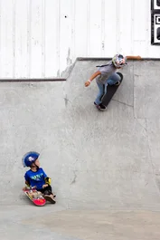 Most kids start out dropping in on the smaller stuff and get their confidence. Then they move it up to the bigger transitions...
