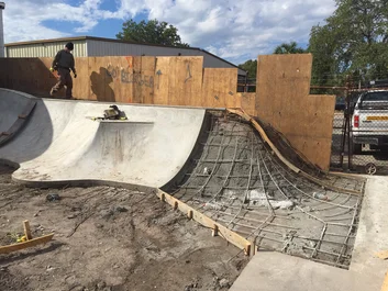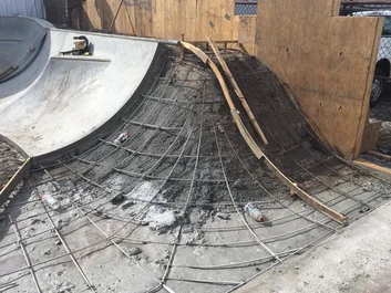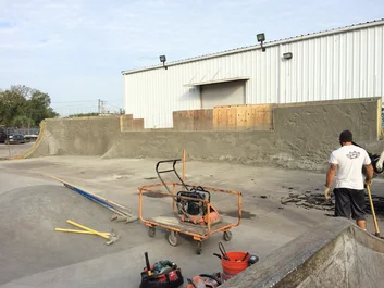 Here’s the build crew. We’re stoked to have Team Pain putting in the work to bring you a new concrete course in the courtyard. Stay tuned for more updates and see what we change up from this post. Who knows? We could end up bringing the vert ramp back instead.