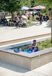 Marcus Sarsycki takes a gnarly Grind Drop before noon.