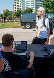 Brian trying to figure out whats louder.. the speakers or Nate Sherwood.