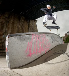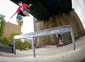 Newly recruited by Flip Skateboards, Lucas Rabelo takes note with a Kickflip Crook.