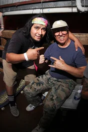 Age doesn't matter in skateboarding. Even though Levi isn't smiling, I promise you these guys are good friends.
