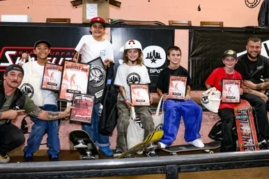 Rain Salazar - 8 and Under always brings out the crazy crouching boardslide photos. These kids have some serious core strength to be able to straighten out and land their tricks after sliding like this.