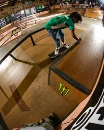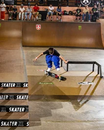 Felipe going for most tricks and obstacles skated in a finals run - Back Bigspin