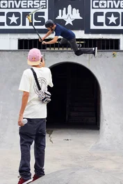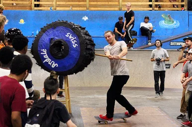 Out in the courtyard, Pete showing off his flip tricks all weekend long.
