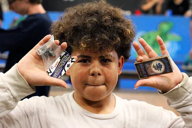Best Trick and Second Place runner up, Ethan Harr was all smiles but Tim Geiger wants to know "Whats in the box!!!".