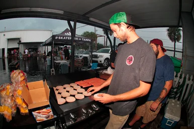Josh Knight - Expert Meat Handler. Free BBQ for the rippers to keep them skating all day!