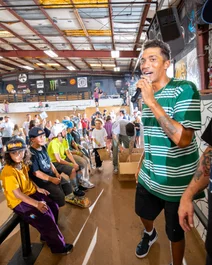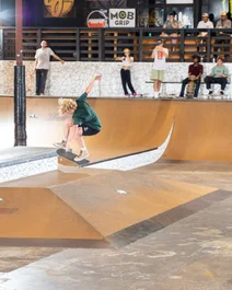 Her birth name is Juliet but the crowd knows her as JuJu. JuJu eyeing up the park before dropping in.