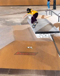 Enzo Bustamente pop shuv it warming up for his first contest at SPoT and starting young too - only 6 years old!