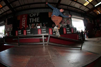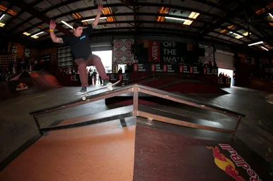 Here we are Saturday afternoon for Clash of the Crews presented by Vans. There were close to 20 amazing teams, but at the end of the day it was going to only be one who took home the gold and a grand. That's Ashton Dohany from Galactic G going off the wall for this Air to BS Wallride.