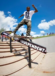 Tony Christopher always working on his Side Project, this time with a Front Five-0 Grind across the sub-box and over the bench.