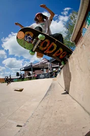 After Qualifiers was finished David Gravette celebrated with a ridiculously gnarly Ollie into the bowl.