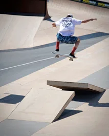 Next Event: The Independent Trucks Best Trick contest. Jamie Foy gets things cracking conveniently with a Firecracker.
