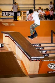 Perhaps one of the tougher tricks to go down the hubba this weekend.. Sora Shirai with the Front 180 Switch Back 5-O.