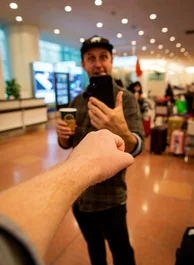 Sam keeps things exciting right of the bat and jams his passport into the atm machine.