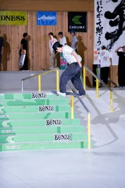 Yuki was one of the few to skate over the rail to flat. He did so with style - nollie inward heel. Just another drop in the bucket hat for him