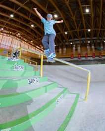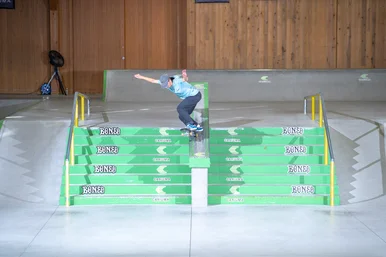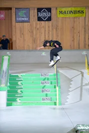Ren keeping the hype going with a backside flip nosegrind on the bump to ledge