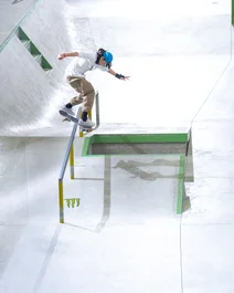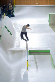 Barley grind followed up by the back 180 nosegrind on the a-frame rail.