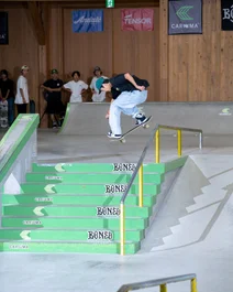 Every skater in Japan was a big fan of doing this trick. Tre flip front board from Toa to kick off semi-finals.