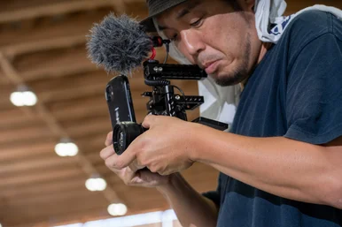 Toshi before he started playing rock, paper, scissors with kids for product.