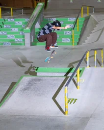 Kaede showing us that the rail and hubba in the center aren't the only obstacles. Gap back tail
