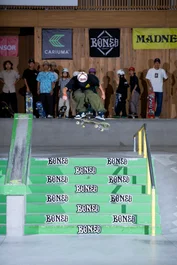 There he is. Two time Damn Am winner Daiki Ikeda! Kickflip front blunt on lock.