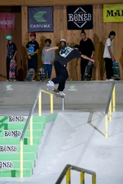 Seto Kitano throws a front feeble down the handrail during Women's Practice. Excited to see how the Women's Qualifiers plays out!
