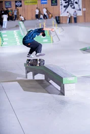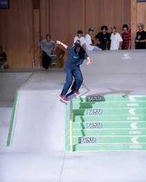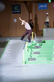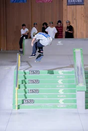 Men's top Qualifier Aumi Yamazuki had a smile on his face during his entire run - you can tell the kid loves skateboarding. 180 switch crooks to kick off his run.