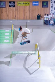 One of the contest favorites, Momohei Yabushita, whips a hardflip over the bank to bank for the judges.