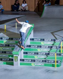 Sena closing out semi-finals with a heelflip front blunt
