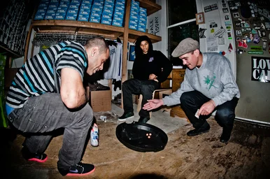 Smooth game of cee-lo in the back of the art opening.