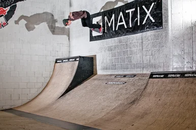 Ricky Nunn always goes big. Huge alley oop 180 from the quarterpipe into the bank.
