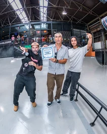 Julian broke his truck during the semi-finals and had to skate Joey Brezinski's board in the finals. I don't think many kids can say that!