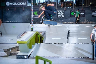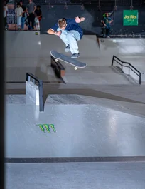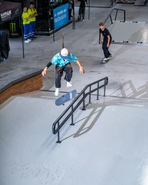 Back on the course we got Germany's Mika Möller with a fat tre flip on the pyramid