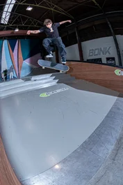 Tijmen Overbeek putting his all into a back smith on the a-frame rail.