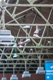 Head back inside and we found some old shoes up in the rafters. The cobwebs help keep them in place.