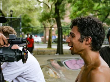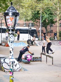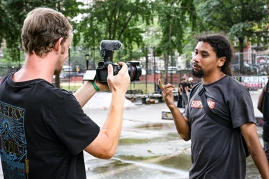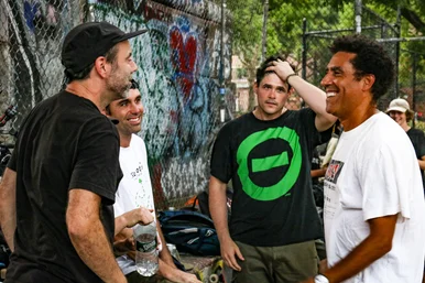 NYC's own, Jiro Platt, showing Koston Eaton what a skateboard is.