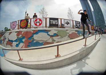 Even after being snaked about a hundred times, Dashawn Jordan rifled off trick after trick throughout the Best Trick Contest, getting him first in the category. This 360 Flip 50/50 was just the tip of the iceberg.
