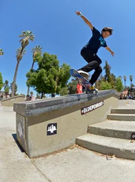 Dominick Walker is all smiles on this Kickflip Front Nosegrind.